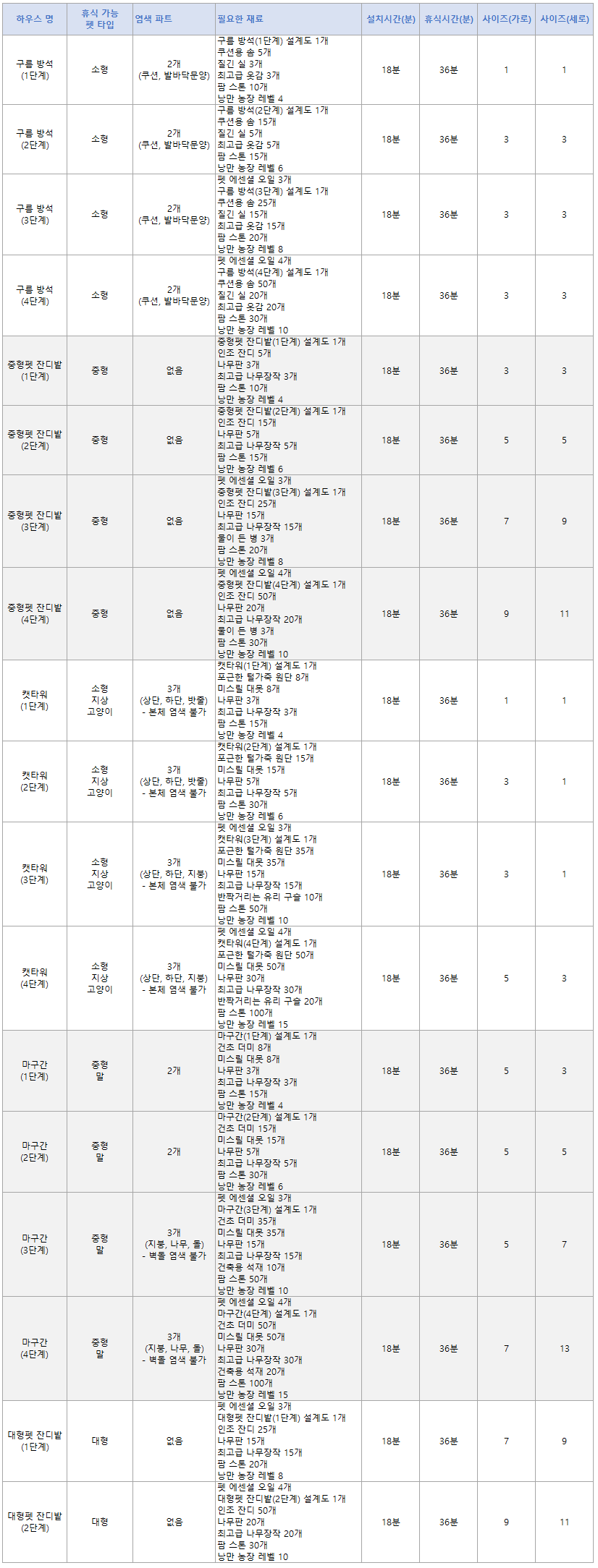 1-2. 중형펫 잔디밭 : 5만 > 15만 > 40만 > 75만 두캇 = 총 4단계